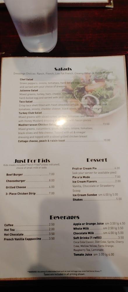 The menu at Buttermilk Cafe offers a delightful range of breakfast and lunch options. Breakfast items include classic omelets, pancakes, and their famous skillets, each prepared to satisfy every appetite. Desserts such as pies and ice cream add a sweet finish to meals.